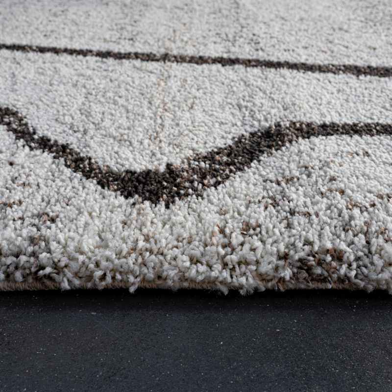 Mehari 23411 6238 Abstract Shaggy Wilton Rugs in Cream Brown