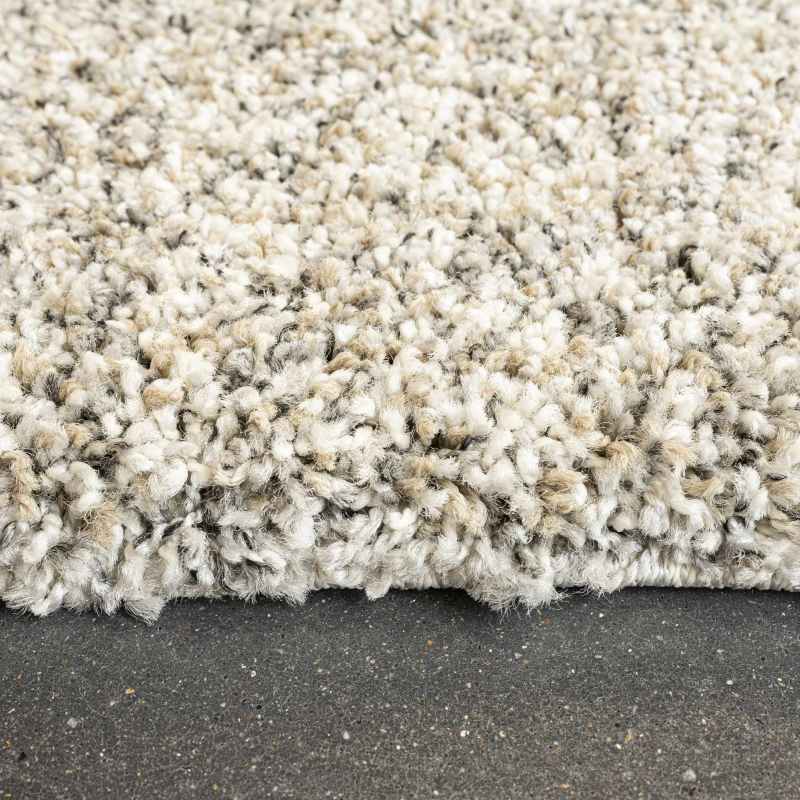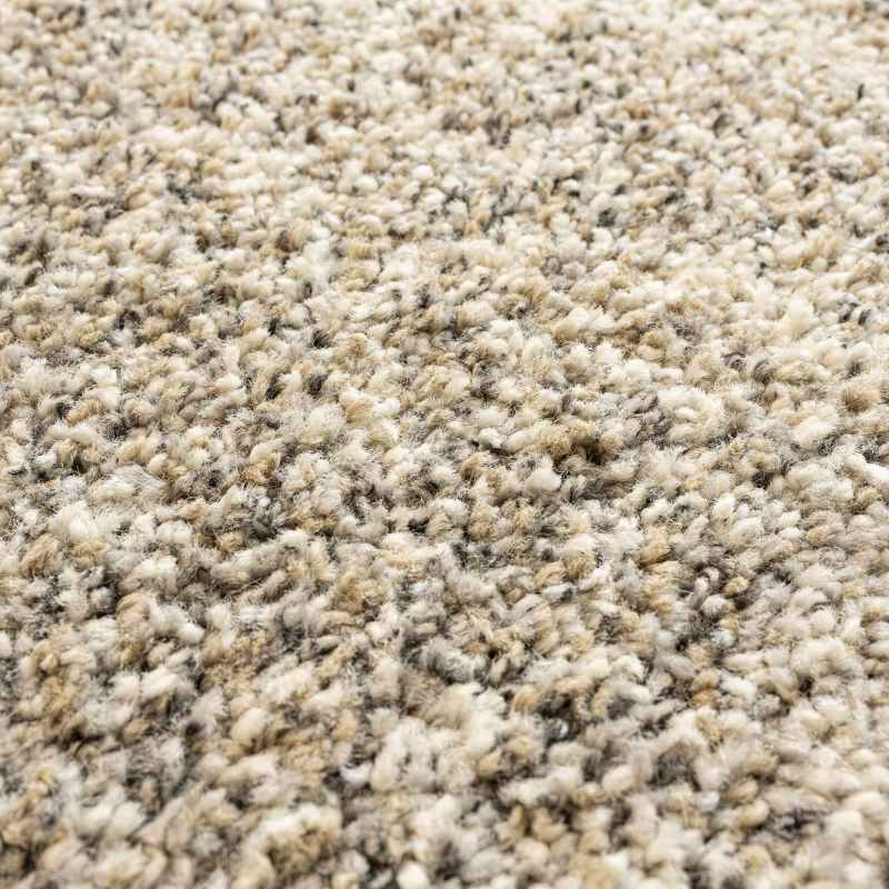 The Mehari 23500 rug features a mottled speckled design for a modern cosy feel. Power loomed in Belgium with a thick, soft 100% heatset polypropylene pile which benefits from being soft to touch, stain resistant, colourfast, water repellent and anti shed. The Mehari rug comes in a contrasting beige colour palette which will bring comfort and style to any living space, including the bedroom, living room or office. Pile height 25mm. These stunning shaggy rugs are available in a wide range of sizes from small to XXXXL, and are safe for underfloor heating.