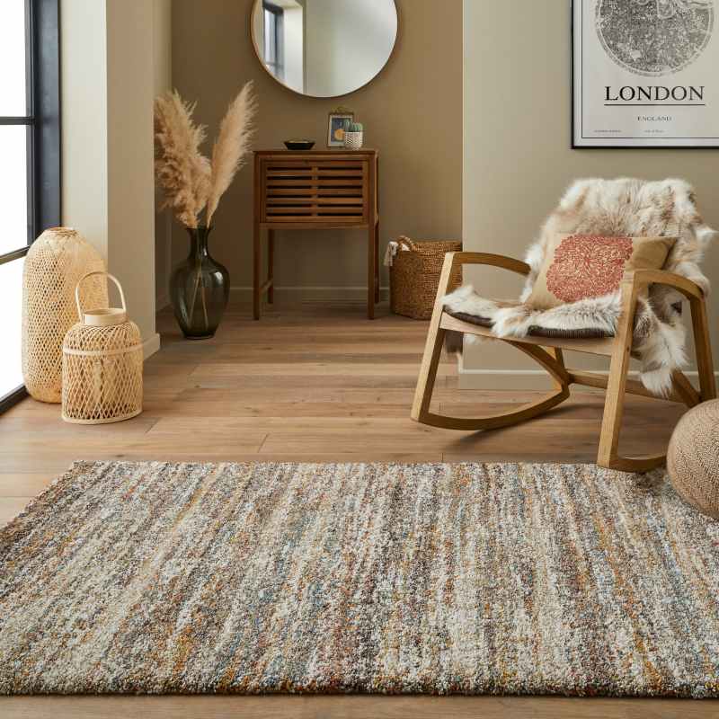 Mehari rugs 23094 6969 are power loomed in Belgium with a thick, soft 100% polypropylene pile in a berber style which benefits from being soft to touch, stain resistant, colourfast, water repellent and anti shed. The Mehari rugs feature an abrash design with a contrasting multi tonal colour palette which will bring comfort and style to any room in your home. Pile height 25mm and weight of 3200g per square metre.   For matching Hallway Runner click here  For matching Circular Rug click here