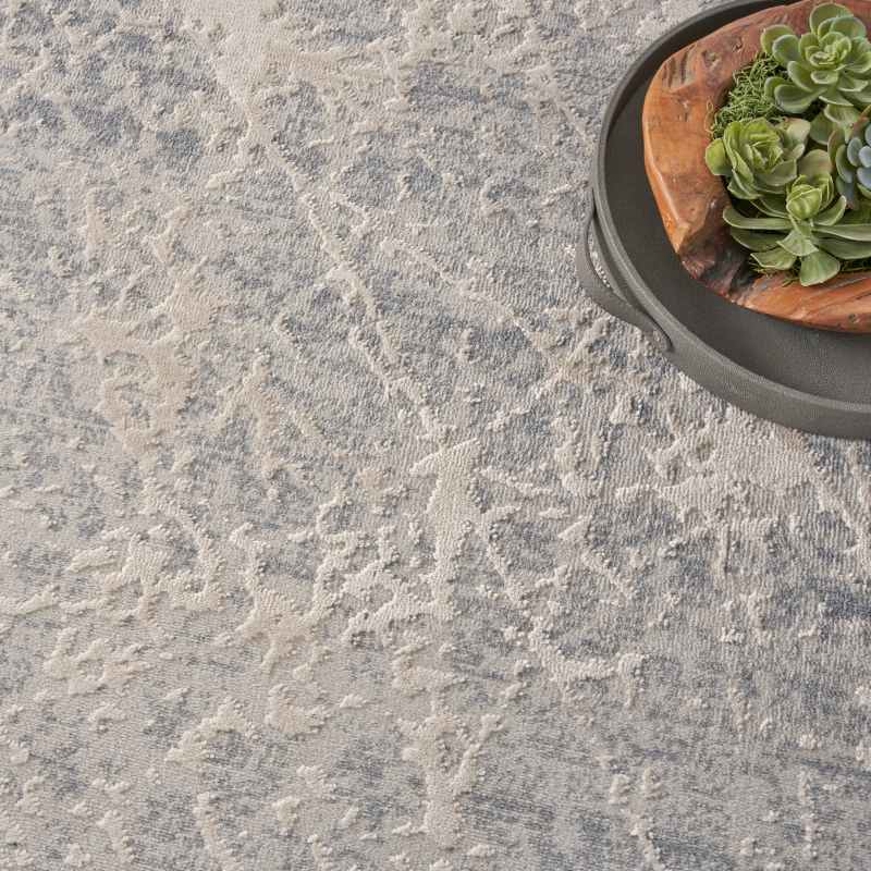 The Exhale EXL02 rug by Nourison features a stunning abstract design, creating a focal point in your home. Inspired by frosted glass, this rug grounds your space in aesthetic appeal. The sprawling design is presented in neutral ivory white and grey, with subtle tonal variations that add visual intrigue. Place in your living room, bedroom, hallway, or kitchen for an instant style refresh. Machine-made from polyester and polypropylene yarns that are softly textured and easy to clean, finished with a jute backing. Composition: 100% polypropylene, low pile: 100% polyester. Due to the detailed construction of this flatweave rug, both handmade and machine-made, sizes may vary. Recommended for areas with moderate foot traffic, moderate shedding. Vacuum regularly (no beater bar), immediately spot clean with damp cloth, professional cleaning recommended. Available in sizes small to large. Also available in a matching runner click here
