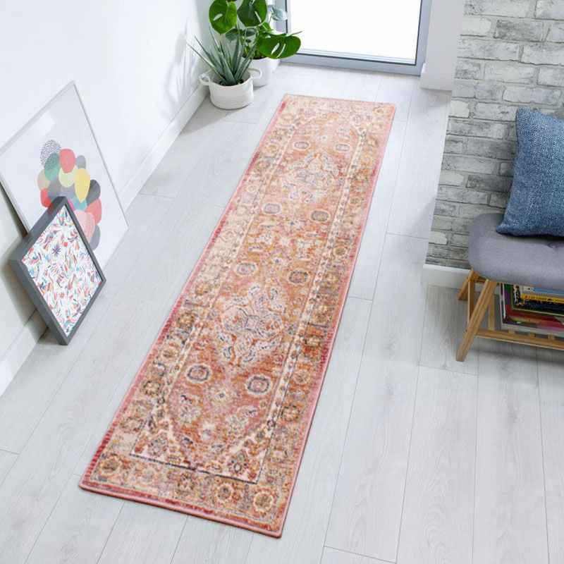 Nova 8879 Traditional Runner Rugs in Terracotta Orange