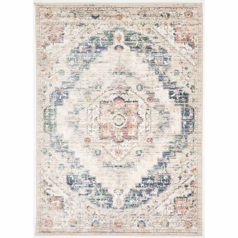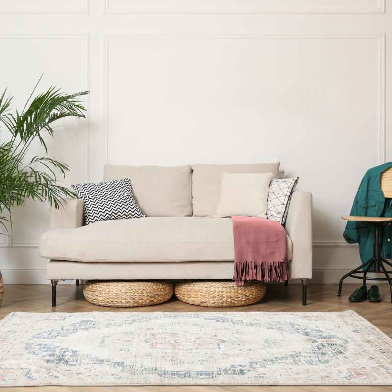 With traditional influences and striking colour tones, the Nova Loki rug is big on style, featuring a distressed medallion design, finished in a blue colourway on a cream white background. Bring a subtle, sophisticated feel to any interior with the timeless elegance of these traditional prints, certain to steal the spotlight. Ideal for any living space, the Nova Loki rug would be perfect placed under a table in your living room, or placed in a bedroom for a statement finish. Crafted from durable material, this piece is guaranteed to bring an eye-catching element of sophistication and elegance to your home. Available in sizes small to extra large. Composition: 100% heat set polypropylene.