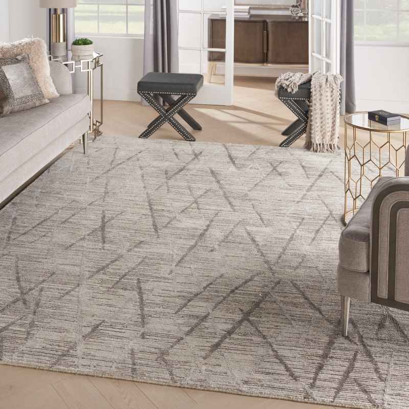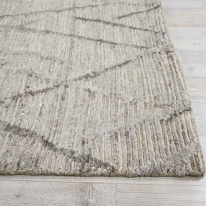 Ocean rugs OCP02 will bring sophistication and opulent style to any room in your home with the delicate crosshatching linear design on the lustrous ribbed pile. Soft and sensuous in tones of stone which interplays beautifully in the light. Ocean rugs have been expertly hand-knotted with a combination of 37% wool, 33% rayon silk and 30% linen yarn which benefits from being super soft and hardwearing. Pile height of 12mm.