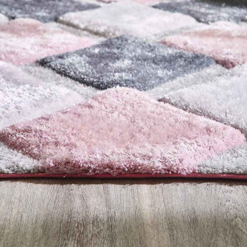 Implement a modern look in your home with our 3D GEO Carved shaggy Rug in Blush Pink. The 3D design combines a geometric diamond pattern with carved textures to create a sleek and sensual visual. Made with 100% Polyester yarn, this product oozes sophisticated modernity, easy to clean, anti-shed and very hard wearing. Available in multiple colours and sizes, for the perfect fit in any room from the living room to the bedroom. Displayed here in a blush pink colourway.