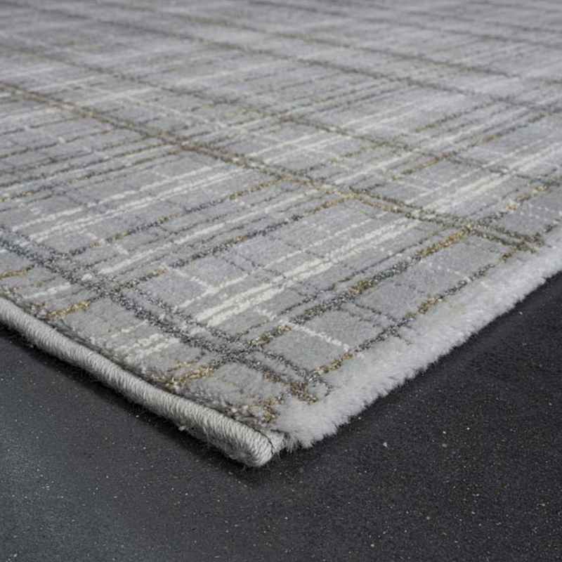 Oslo 59016 5575 Carved Textured Checked Rugs in Gold