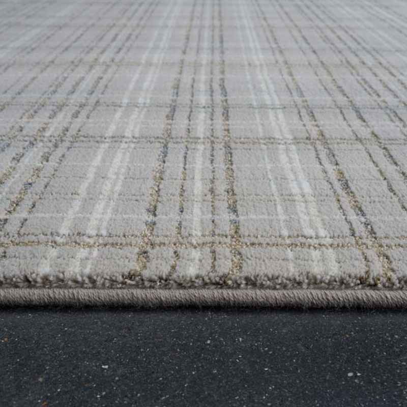 Oslo 59016 8575 Carved Textured Checked Rugs in Silver