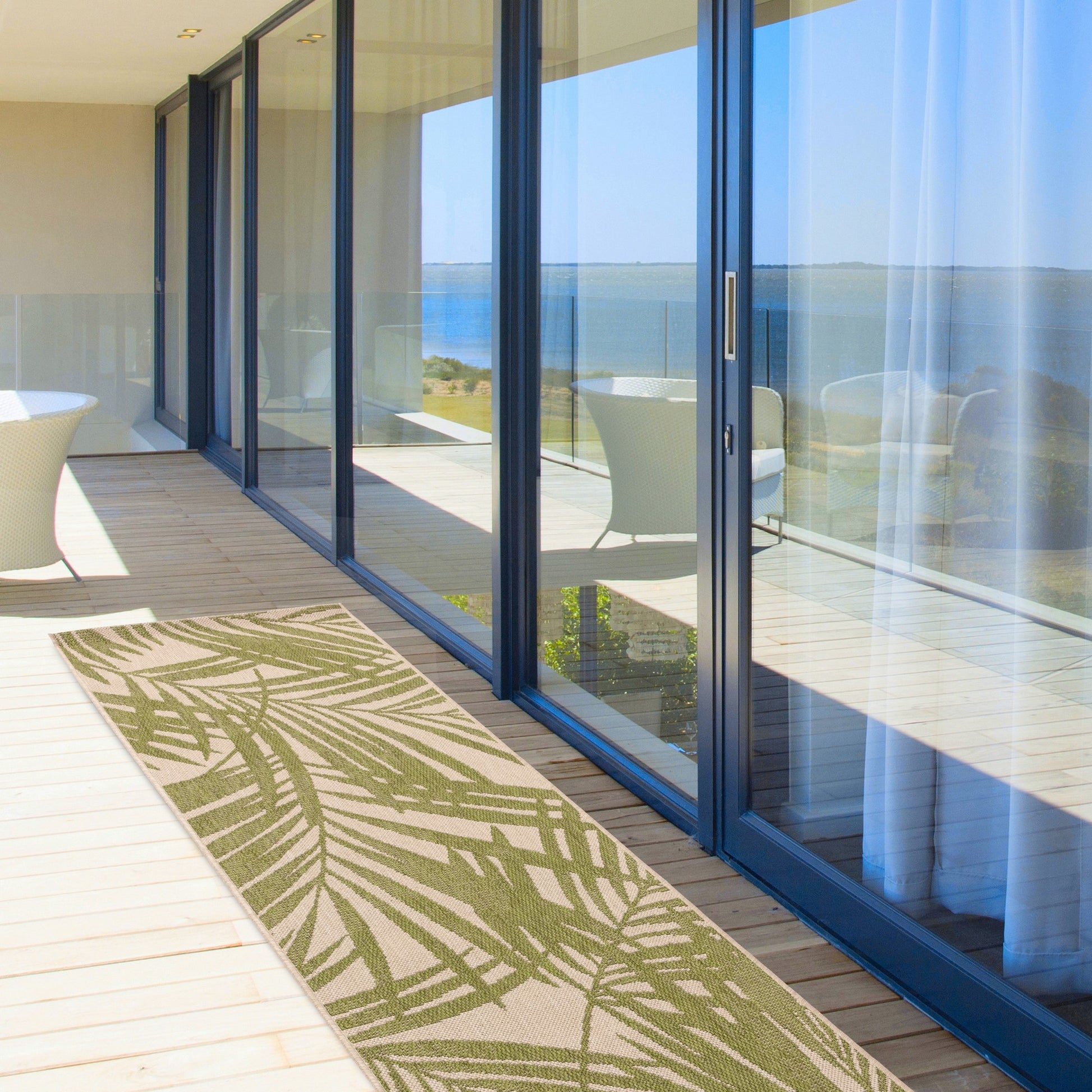 Patio PAT15 Palm Indoor Outdoor Runner Rugs in Green