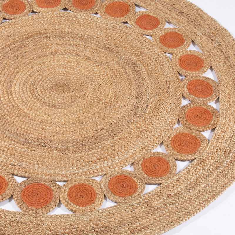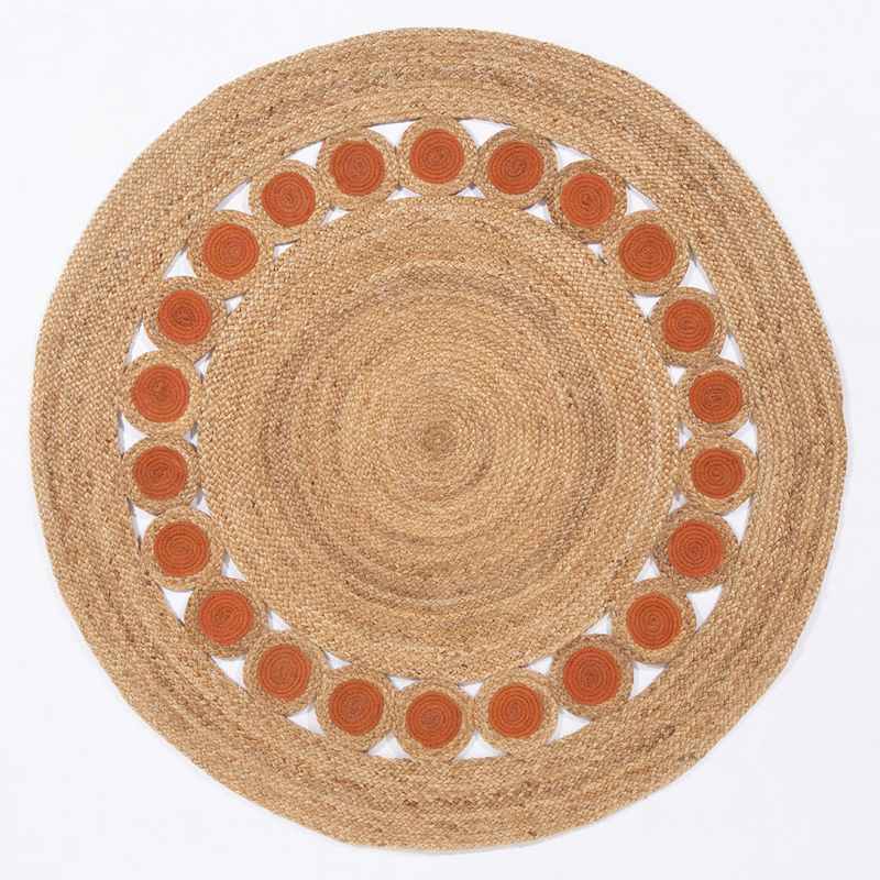 Prestwich Circular Hand Braided Jute Rug in Orange