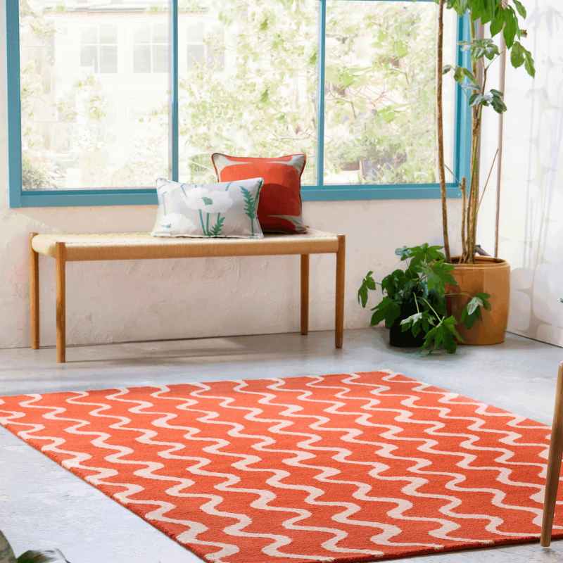 Ribbon Abstract Rugs 124300 by Scion in Coral Orange