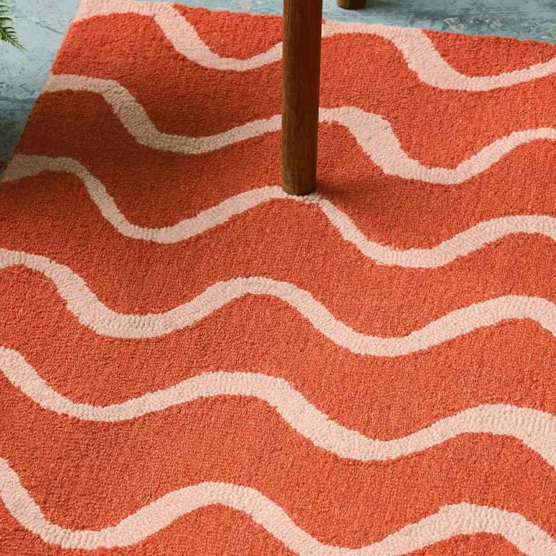 The Ribbon 124300 rug offers an abstract pattern that is designed to suit the modern home. Featuring a ribbon swirl design, in a coral orange colourway. Handtufted with a loop pile, crafted from 100% pure new wool which benefits from being comfortable, fire-resistant, durable and sustainable! This stunning rug is the perfect finishing touch to add to your home décor, ideal for bedroom and living room areas, wherever you want to make a bold statement. Pile height: 14mm. Available in sizes small to extra large.