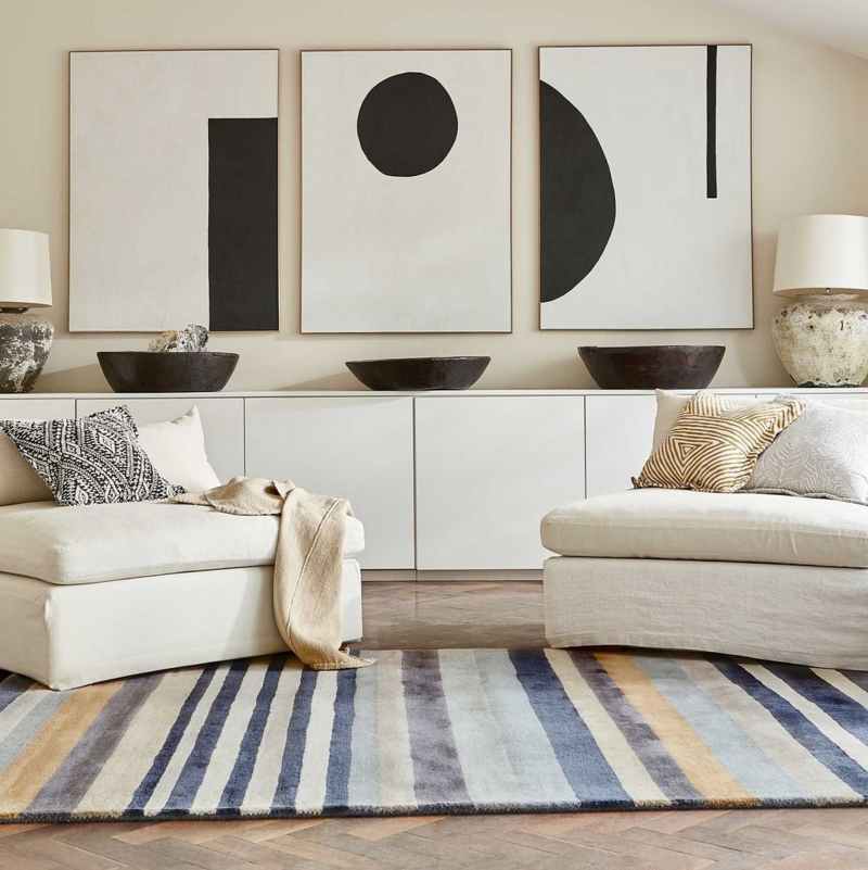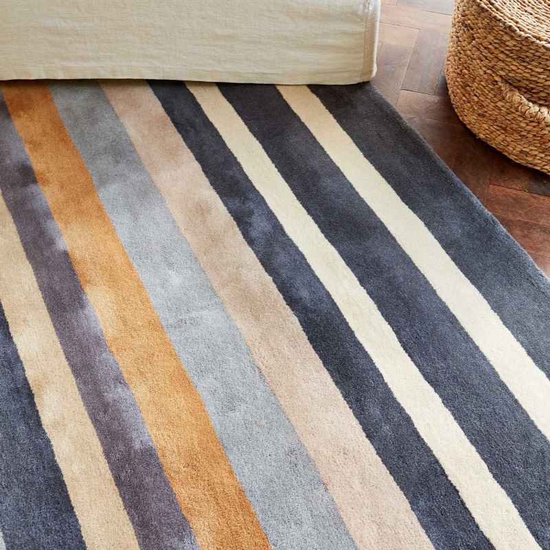 Harlequin Rosita Rugs feature a stripe design with a fashionable putty colour palette that is designed to suit a contemporary room setting. Rosita Rugs are handmade in India by Brink and Campman and have been designed in the UK by Harlequin to match their range of fabrics and wallpapers. The thick, soft, 100% wool & viscose pile is designed to offer high levels of luxury and comfort.