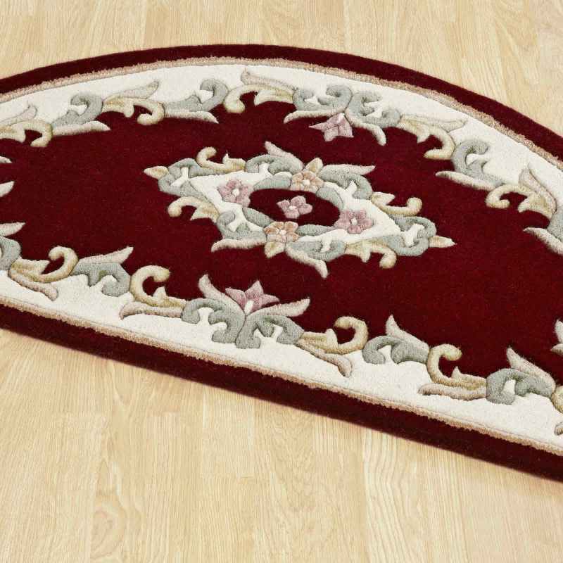 Royal Aubusson Half Moon Rugs in Red are hand made in a sculptured, traditional Aubusson design using 100% Wool yarns. These half moon rugs look very sophisticated in front of a fire hearth and we also stock a selection of rectangular and circular shapes to complement surrounding areas.