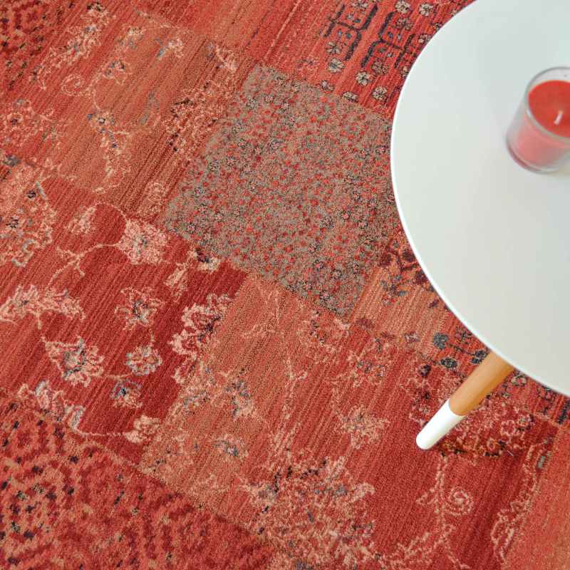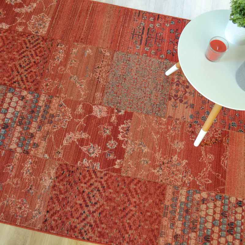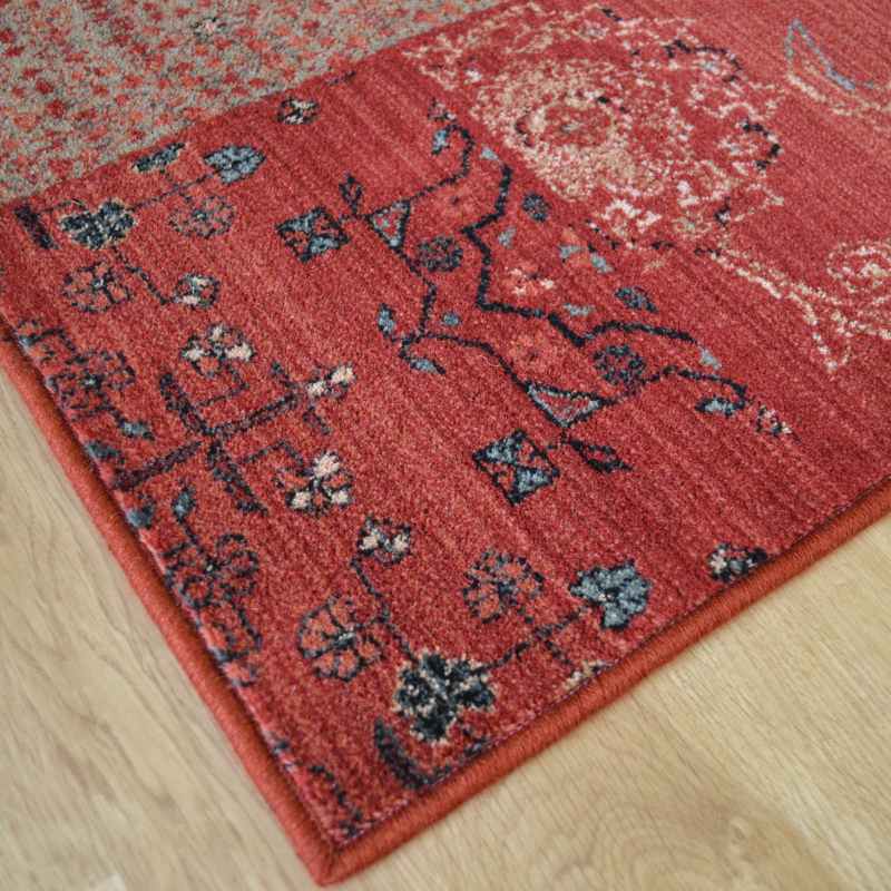 Royal Kashqai rugs 4327 300 are power loomed with a luxurious, 100% wool pile. The patchwork design with a selection of traditional patterns with intricate detailing sit perfectly together with vibant red and orange colour tones. Weight approximately 2700g per square metre.