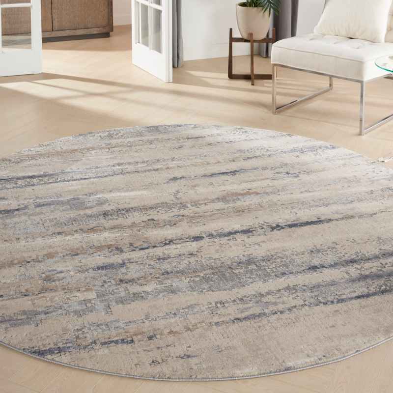 At home in a country cabin or urban loft, the Rustic Textures RUS04 collection from Nourison blends earthen tones and contemporary abstracts together in beautifully textured modern rugs that are sure to bring a rustic feel to any decor. In a beige and grey colourway, this circle rug is the perfect new addition to add to the living room, bedroom and hallway areas of your home. Gorgeously crafted with 51% polypropylene 49% polyester, for an extremely resilient and durable rug that is soft to touch. Available in small and medium sizes. Also available in matching standard rectangular and runner rugs. For matching standard rug click here For matching runner click here