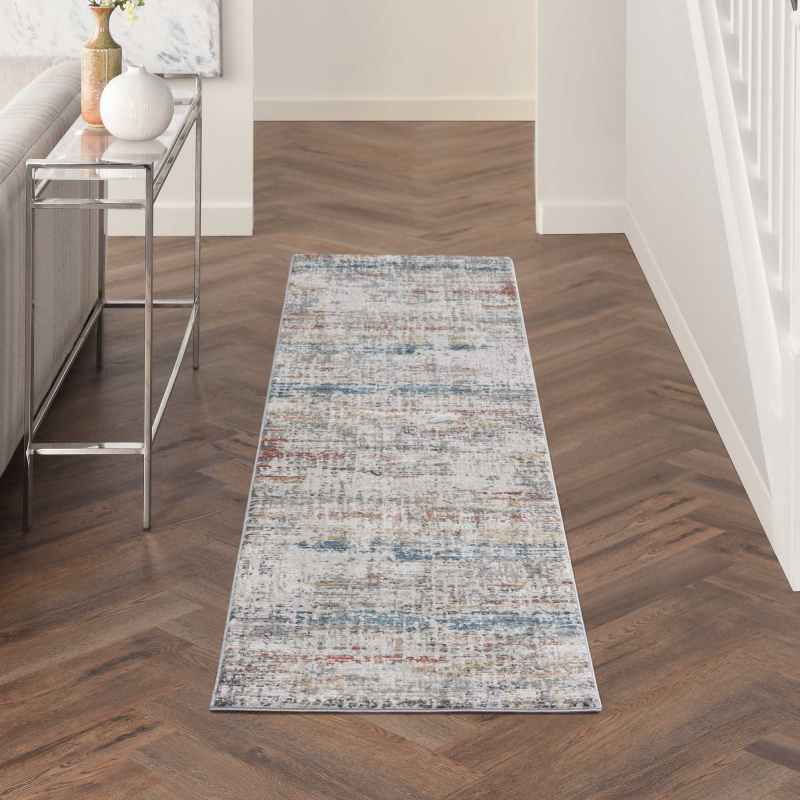 Rustic Textures RUS14 Abstract Runner Rugs in Grey Multicolour