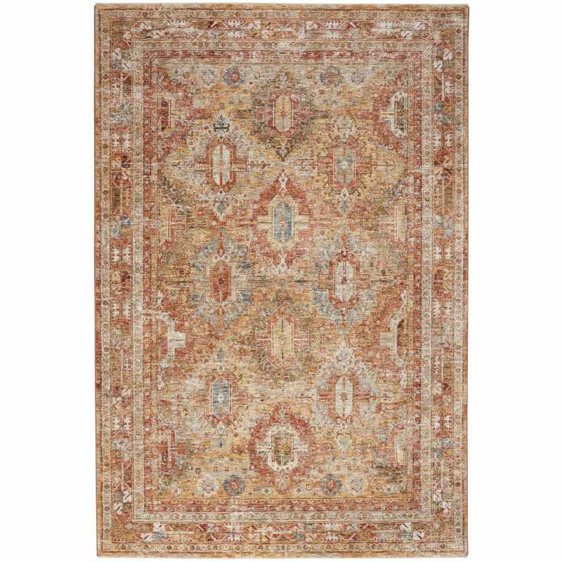 Enhance any space with the vintage-inspired designs of the Sahar SHR01 rug by Nourison. This traditional Persian rug features ornate, detailed patterns that are finished with purposeful distressing that adds a classic feel. With its ornate design in rust orange with neutral details, this vintage rug adds a layer of traditional style and soft comfort to your space. Place this Persian rug in your living room, dining room, bedroom, or hallway for a warm and welcoming accent, recommended for areas with moderate foot traffic. Machine-made from 100% polyester fibers that are soft to the touch, easy to clean and maintain, and comfortable underfoot. Moderate shedding. Available in an array of sizes from small to extra large. Also available in a matching runner. For matching runner click here