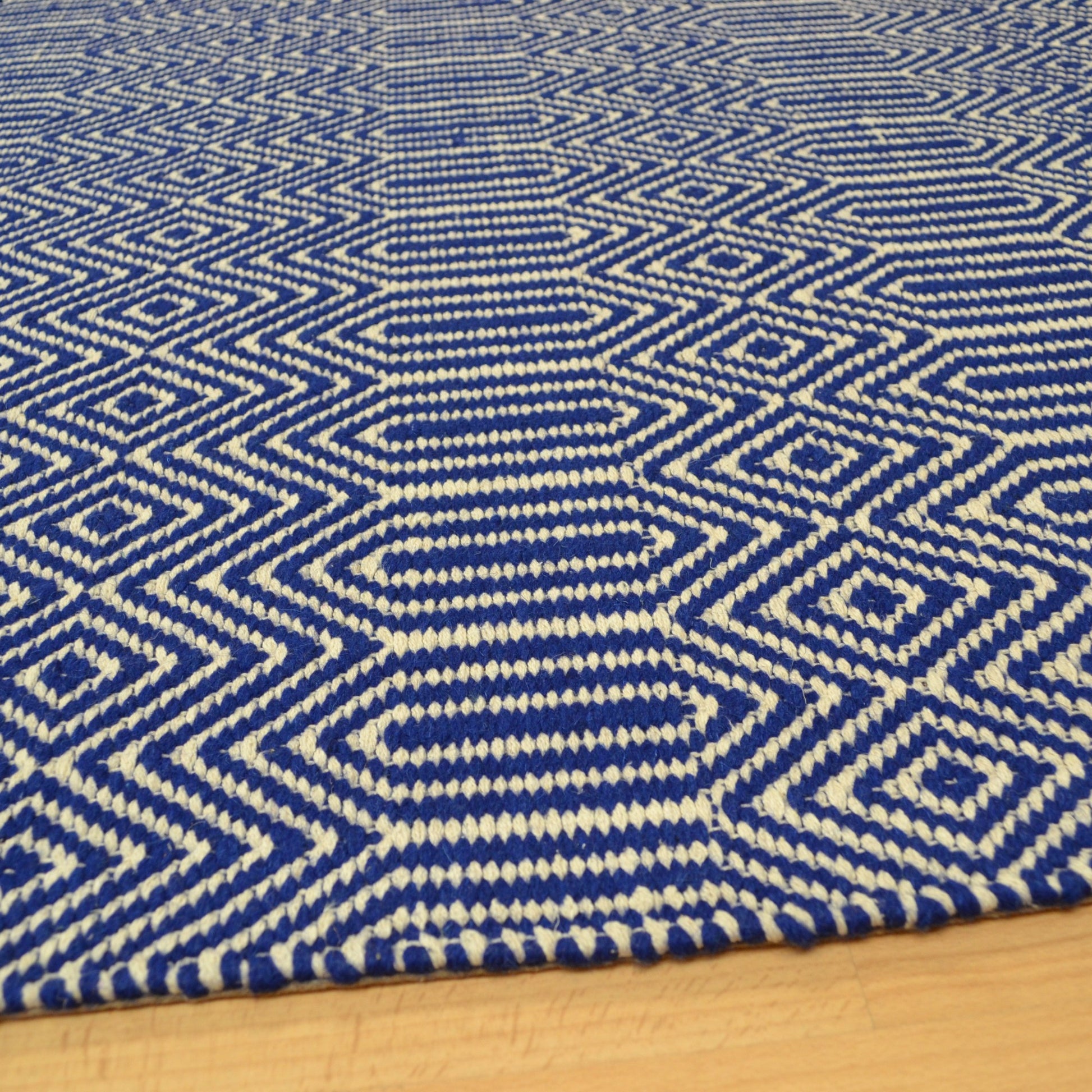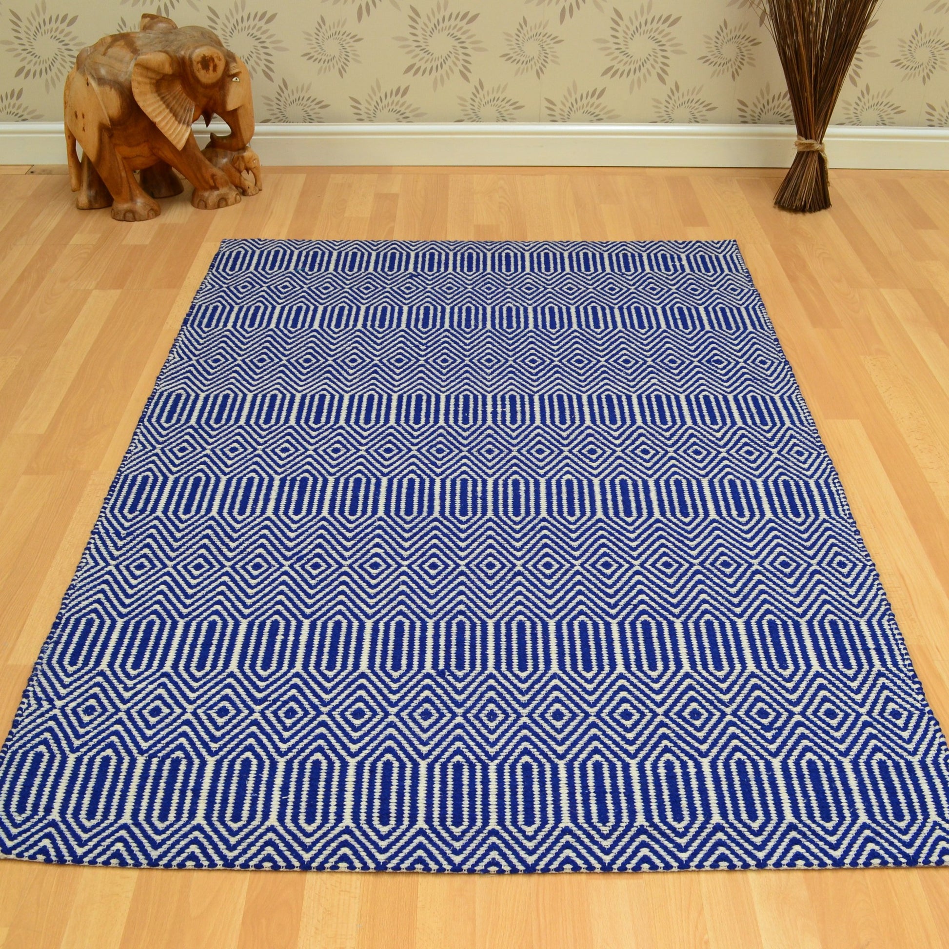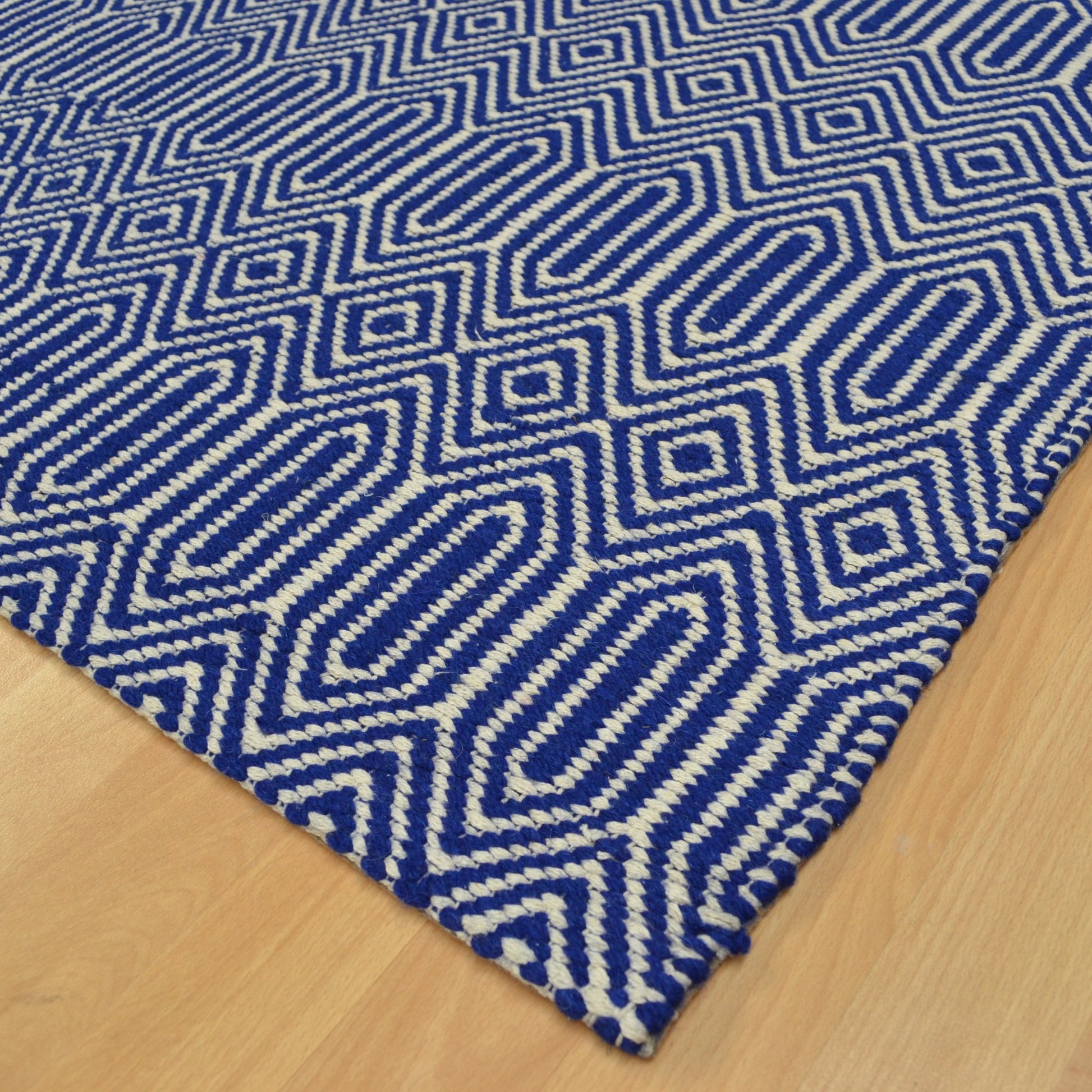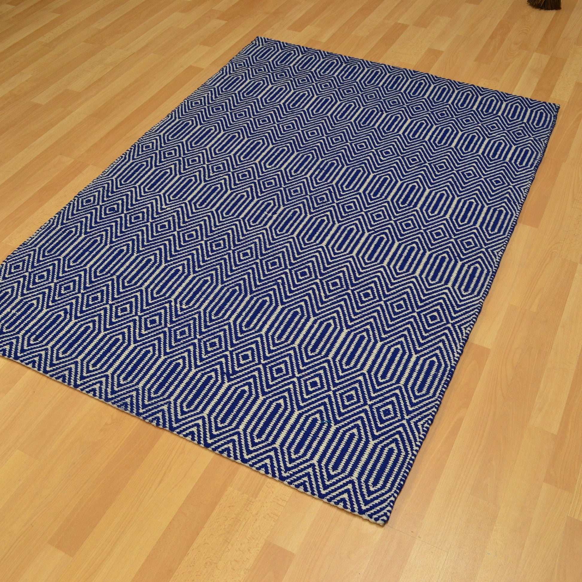 Sloan Rugs in Blue are handmade with a stylish geometric design and a fashionable two tone colourway. This flatweave collection is a popular choice around the home and the 45% Wool / 55% Cotton fibre contents makes it suitable for high traffic applications.