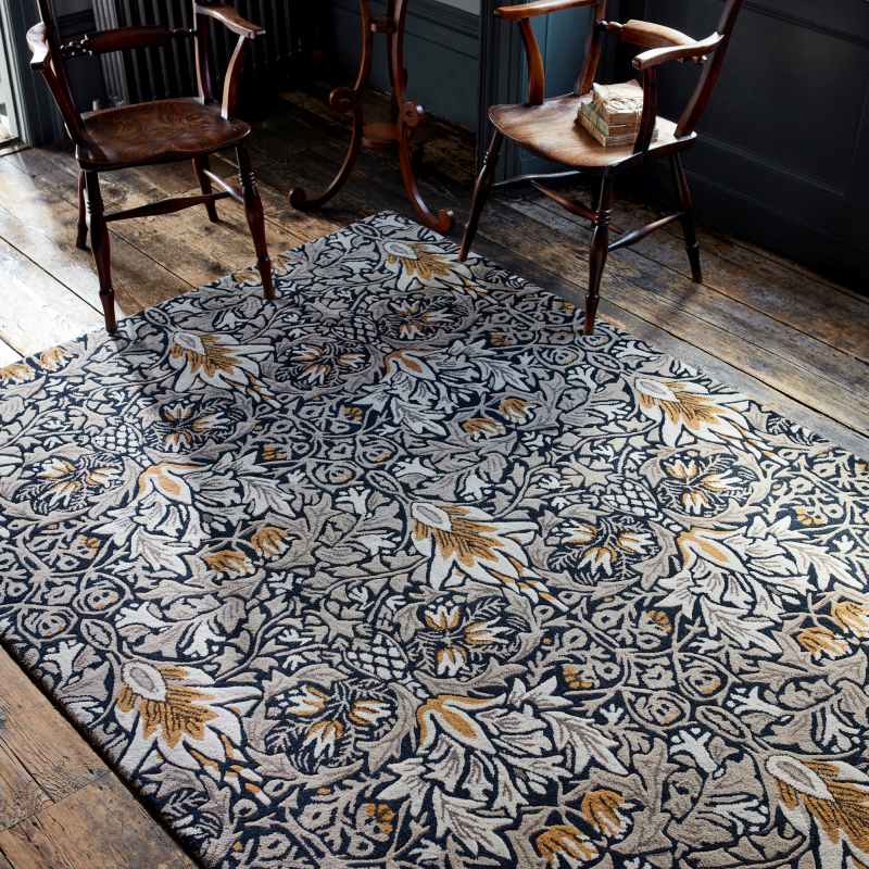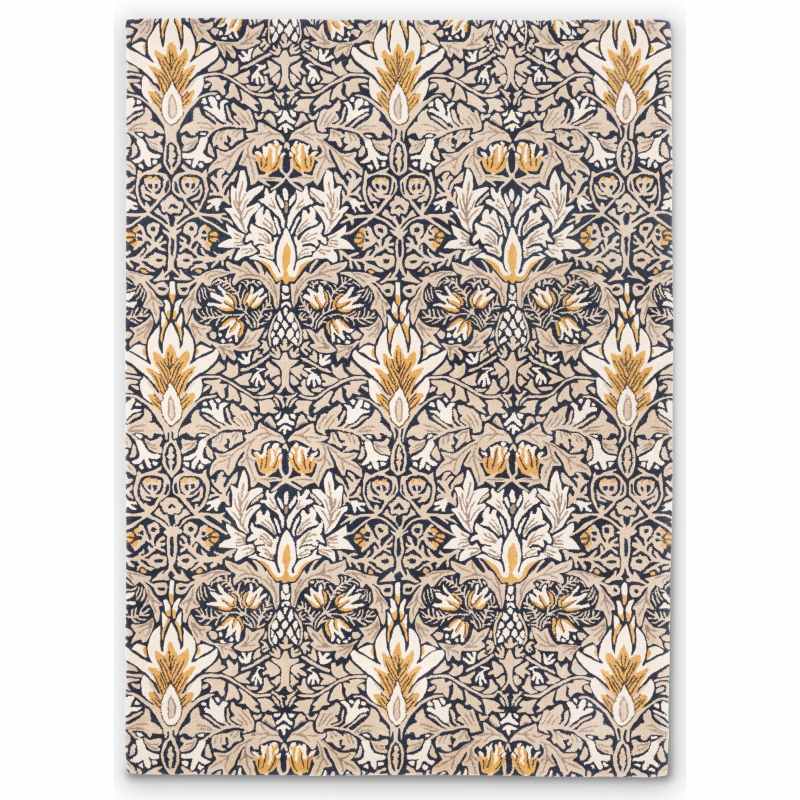 Introducing the luxury Snakeshead rug by Designer William Morris. Featuring autumn coloured florals and leaves in shades of indigo, yellow and beige. Their colours sing and bring the most homey of hues to the land. Snakeshead has been handtufted in India, producing a high quality rug that is designed to provide luxurious comfort, and to meet the demands of the modern home. Beautifully crafted with 98% wool 2% viscose to establish a soft, heavyweight pile that offers a sophisticated sheen. Available in a range of sizes from small to extra large. Also available in a matching runner. For matching runner click here