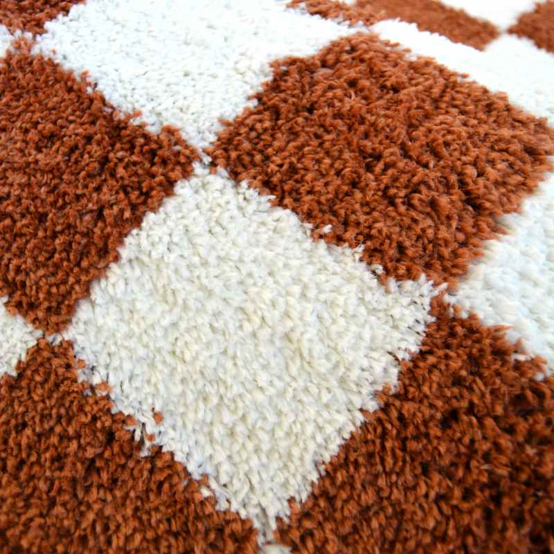 Snug Checks Shaggy Geometric Rugs in Terracotta Orange