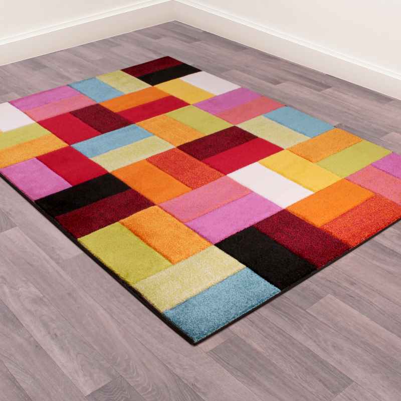 The Spectra Largo rug is a bold and colourful statement piece, guaranteed to make an impact in your home. With its unique, carved geometric pattern it will draw attention and admiration wherever it goes, finished in multi colour tones. This eye-catching piece will transform any corner of your home, perfect for living room and bedroom areas. Crafted from heat set polyester, this rug is available in sizes small to large. Also available in a matching runner click here