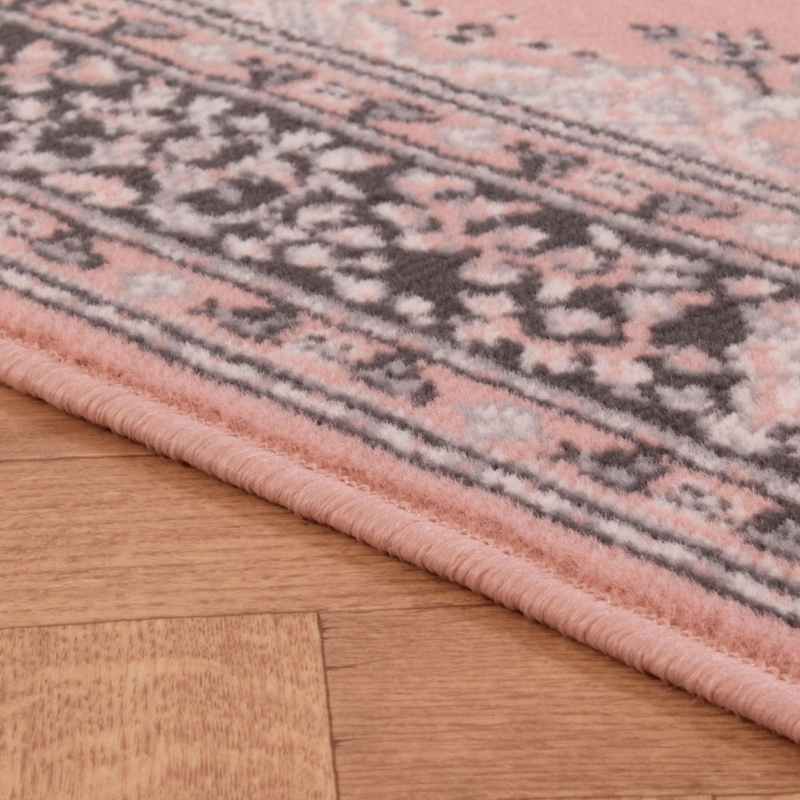 Traditional Poly Lancashire Medallion Border Rugs in Blush Pink