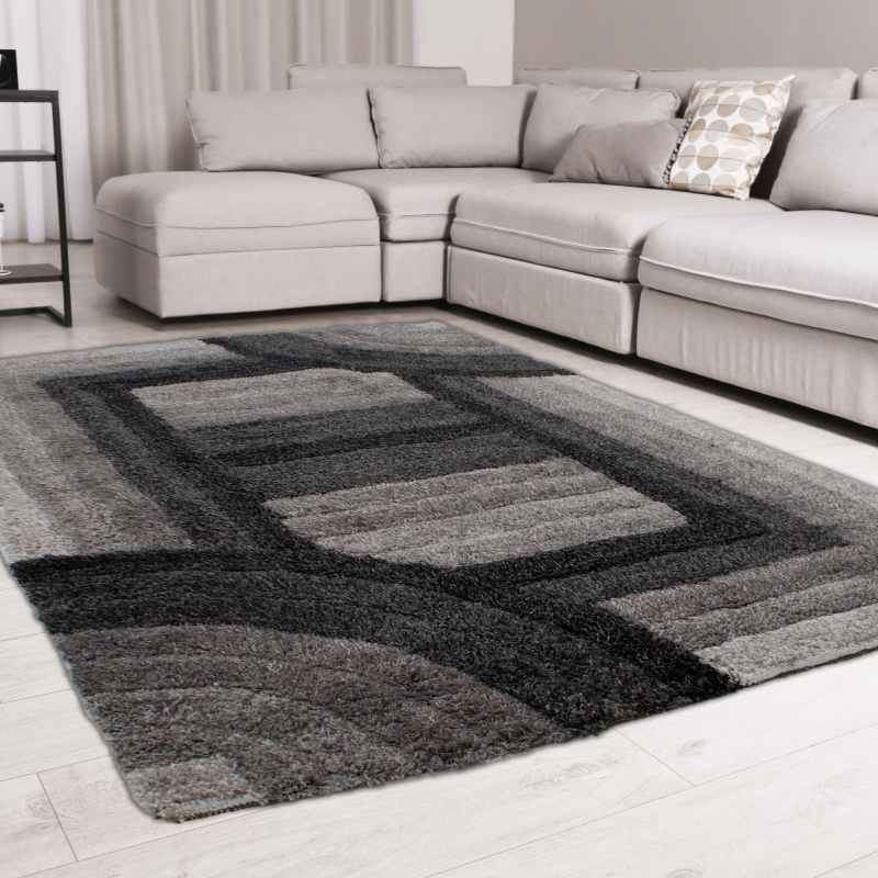Trellis 3D Shaggy Geometric Modern Rugs in Anthra Grey