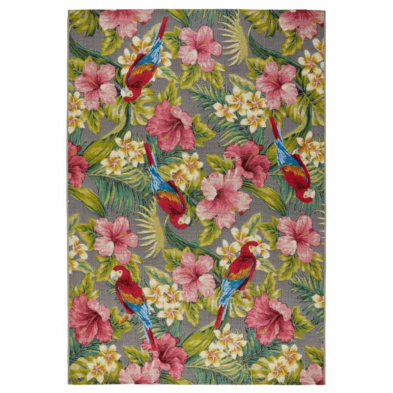 Unleash wild vibes in your home with this floral Tropicana 2 E flatweave rug. Featuring an intricate, multicolour tropical print, this indoor outdoor rug is the perfect feature for any space inside or outside the home! This jacquard woven rug was carefully crafted using a polypropylene-polyester blend, featuring latex backing that is ideal for high traffic areas. Available in a range of sizes from small to large.