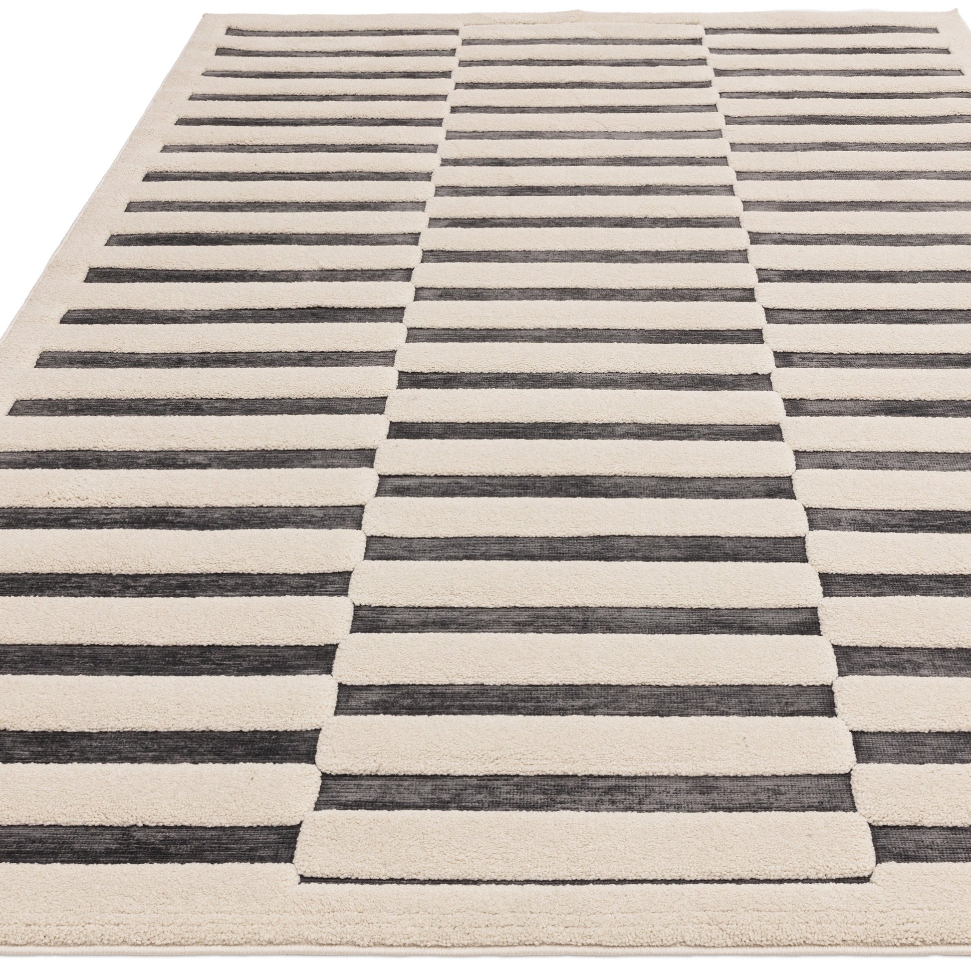 Valley Build Geometric 3D Rug in Charcoal Grey Ivory
