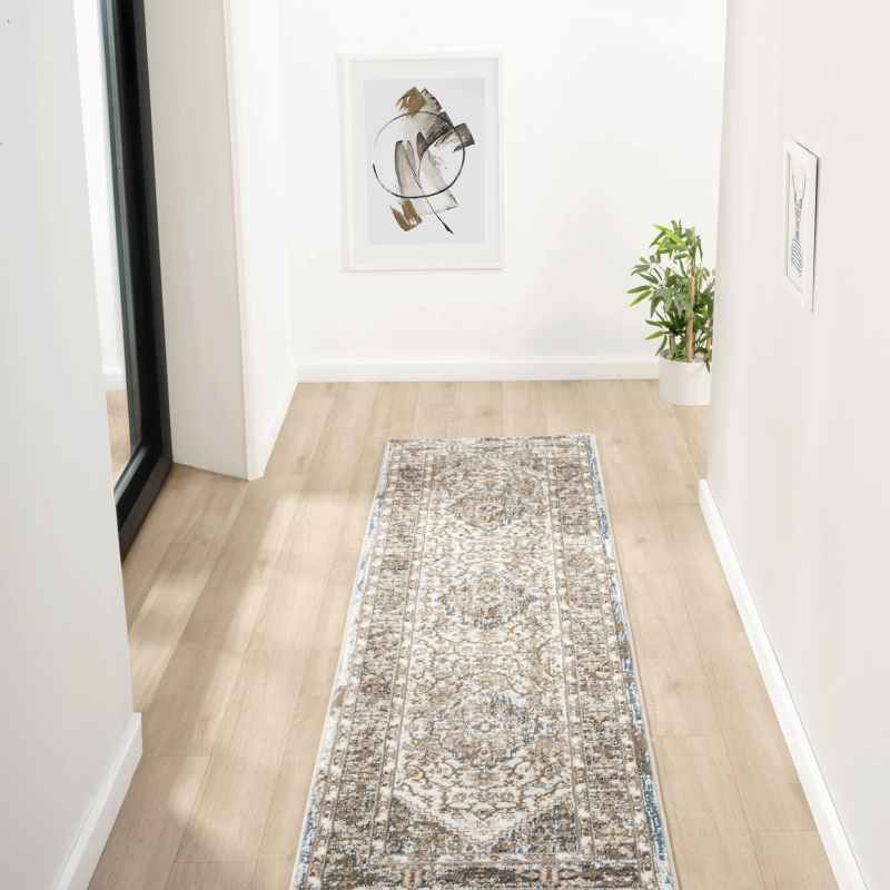 With traditional influences and striking colour tones, the Vintage 552AG runner is big on style, featuring a vintage motif and border design, finished in a blue and anthra colourway. This runner brings a subtle, sophisticated feel to any interior with the timeless elegance of this traditional print, certain to steal the spotlight. Vintage 552AG is a Turkish machine-made runner using a mix of luxury polypropylene and soft polyester. Ideal for a traditional living space, the Vintage 550AG runner would be perfect placed in a hallway or under a table in your living room for a statement finish. This piece is guaranteed to bring an eye-catching element of sophistication and elegance to your home. Composition: 100% heat set polypropylene. Available in one runner size. Also available in matching standard sizes click here
