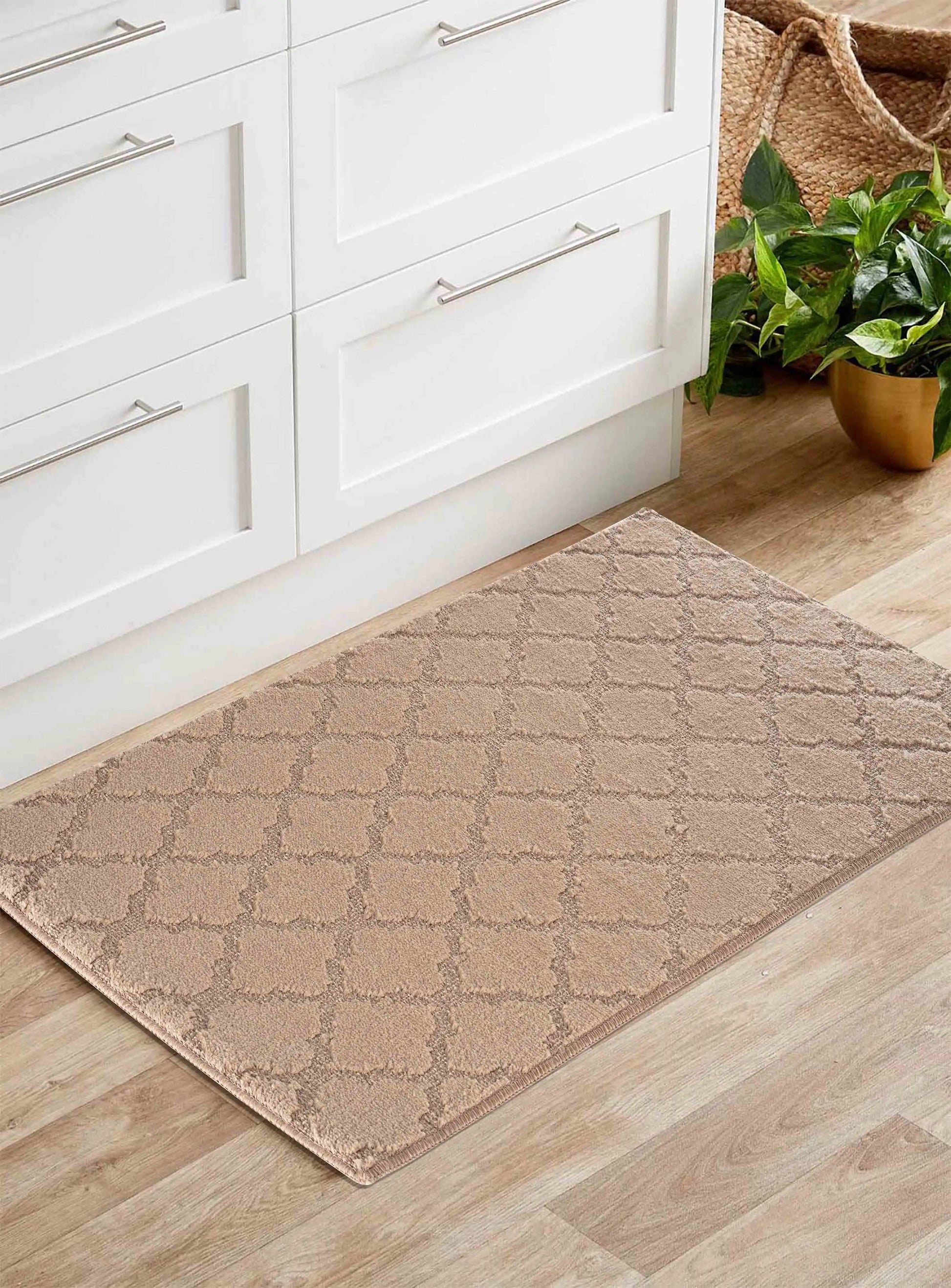 Washable 9mm Gel-Back Ivy Trellis Beige Rug