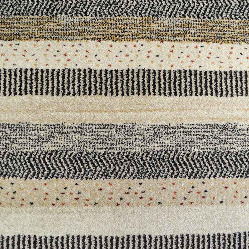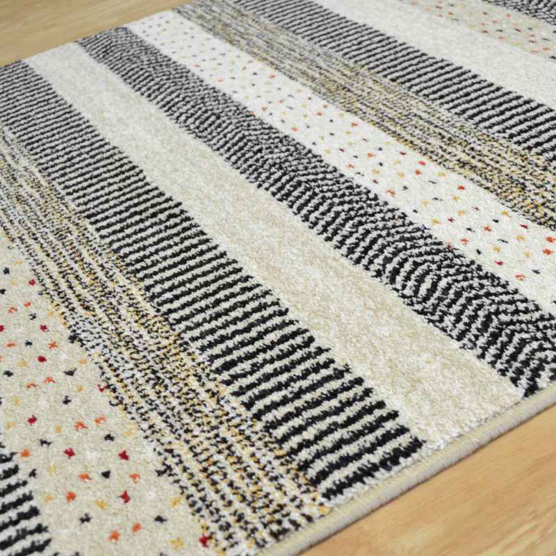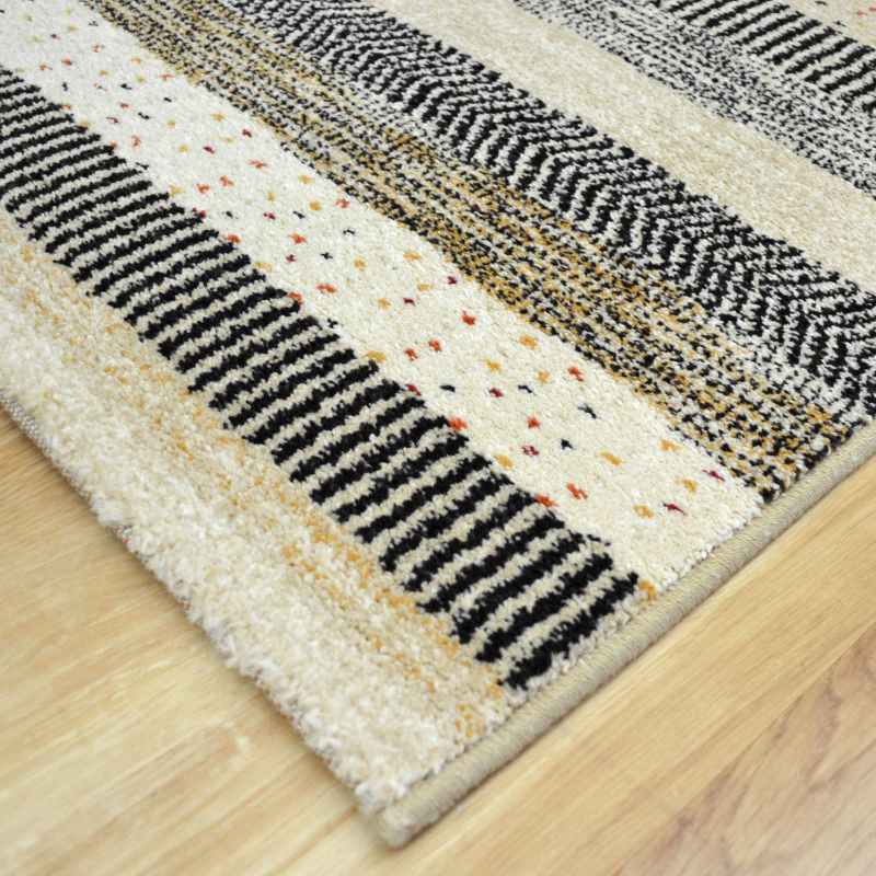 Woodstock 32743 6332 Hallway Runners are machine woven in Belgium with a luxurious, heatset, twisted Polypropylene pile. Featuring bold patterned stripes in cream, the woodstock rug benefits from being colourfast, water repellant, anti shed and easy to clean. A pile height of 9mm and weight of 2350g per square metre.