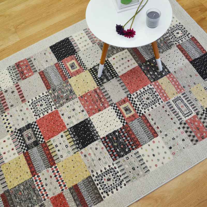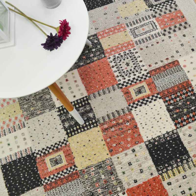 Woodstock rugs 32036 6324 are machine woven in Belgium with a luxurious, heatset, twisted Polypropylene pile. The stunning patchwork design features a selection of contrasting patterns and warm colours. The Woodstock Rug is colourfast, water repellant and easy to clean with a soft 9mm thick pile.