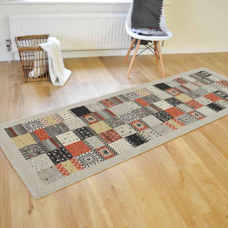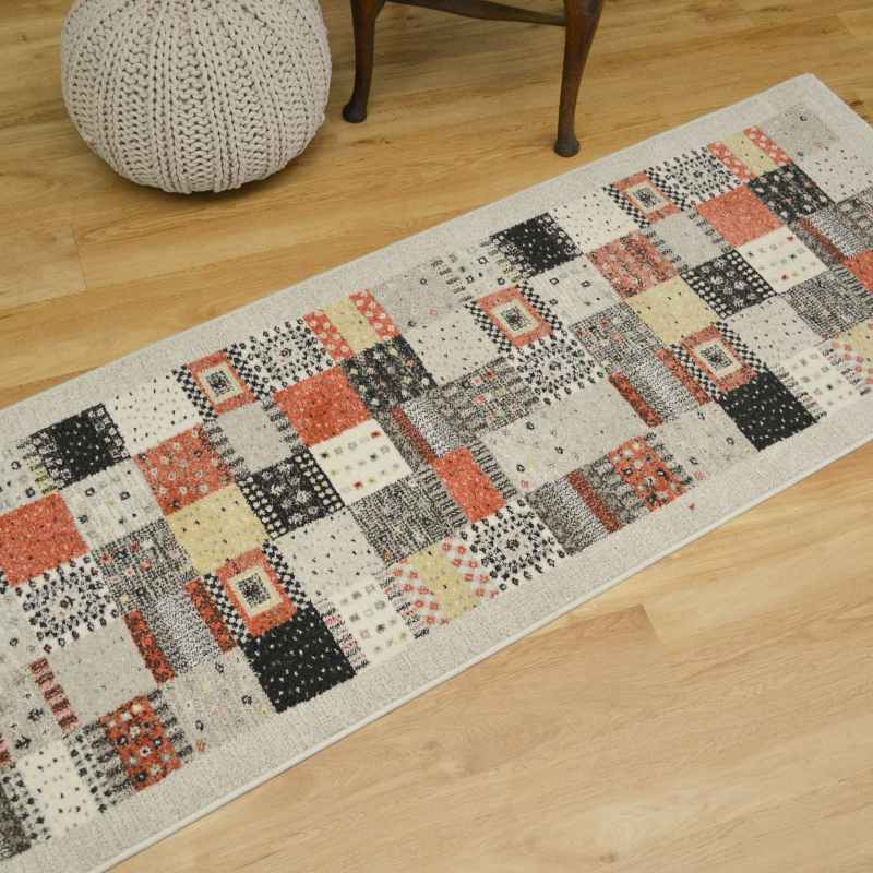 Woodstock Hallway Runner 32036 6324 are machine woven in Belgium with a luxurious, heatset, twisted Polypropylene pile. The stunning patchwork design features a selection of contrasting patterns and warm colours. The Woodstock Runner is colourfast, water repellant and easy to clean with a soft 9mm thick pile.