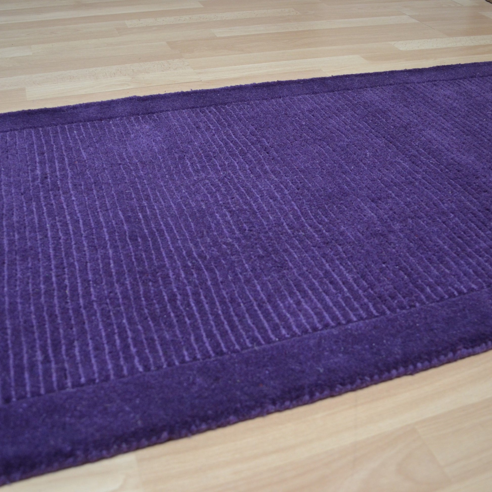York hall runners are hand loomed in India with a deep, soft, 100% wool pile. This stylish plain collection features a plain border and a sophisticated textured centre. With modern interiors featuring a vast selection of patterns in curtains and fabrics, plain runners are often the key to complementing surroundings in your home. Available in a large range of colour palettes, shown here in purple. This runner comes in one size, with custom made sizes also available. For matching standard rectangular sizes click here