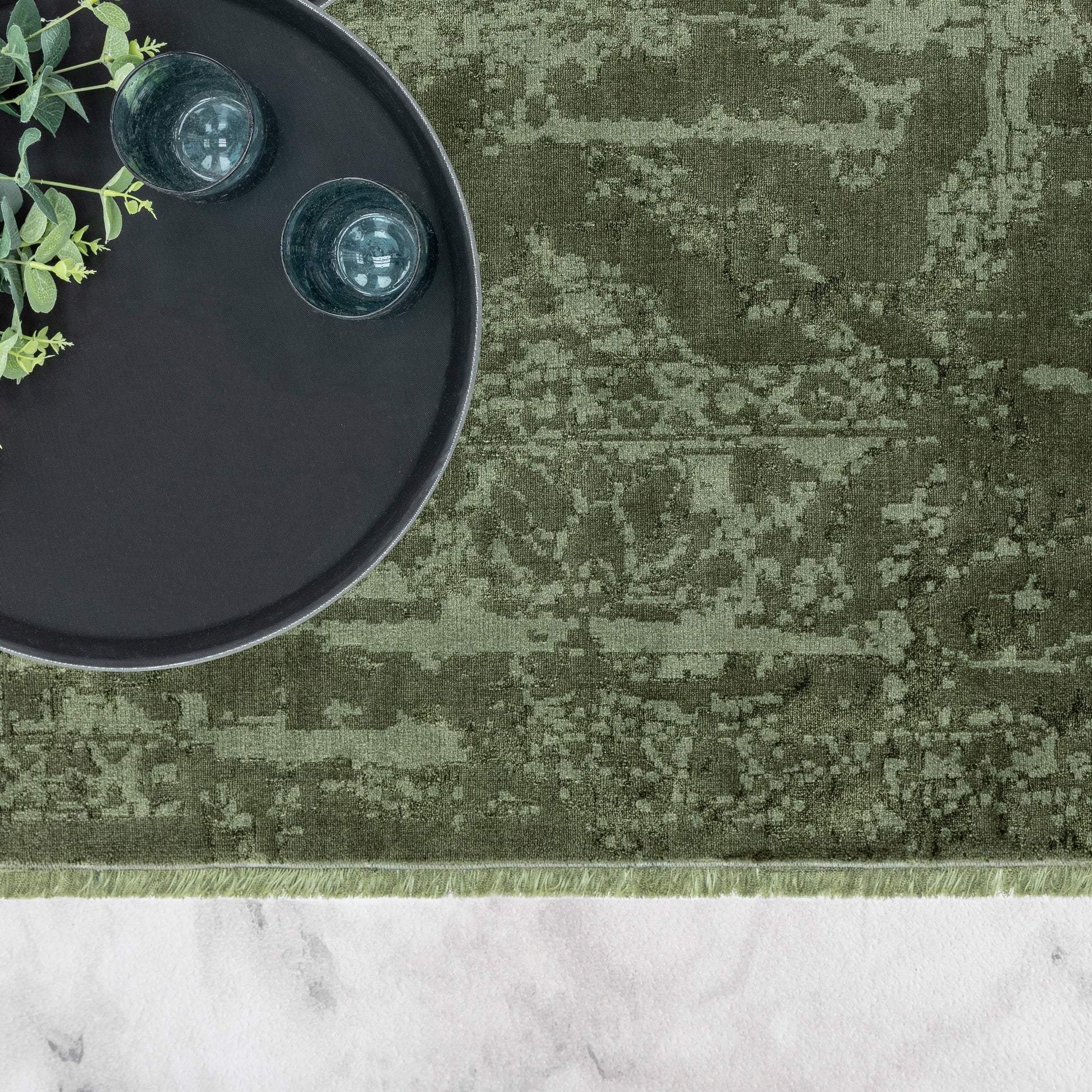 Zehraya Abstract Persian Distressed Rugs in ZE06 Green