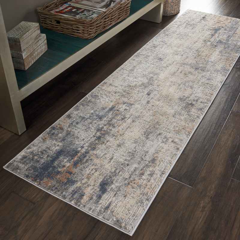 Rustic Textures Abstract Runner Rugs RUS01 in Grey Beige