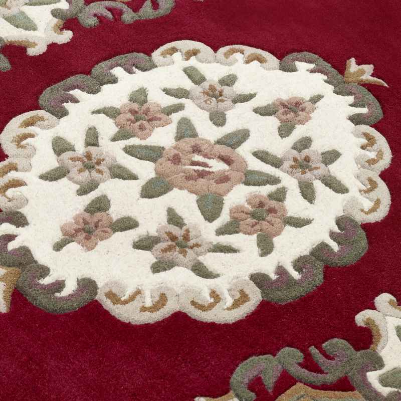 Shensi circular rugs feature a beautiful floral design in wine red colour tones with ivory, beige and Wine red detail. They are a classic centrepiece for any home, perfect to make a statement. Each traditional rug has been expertly hand carved from the thick cushioned pile to enhance the intricate pattern. Shensi rugs have been hand tufted with a deep soft 100% wool pile and a cloth backing. Weight of 2300g per square metre. For matching Rug click here For matching Hallway Runner click here