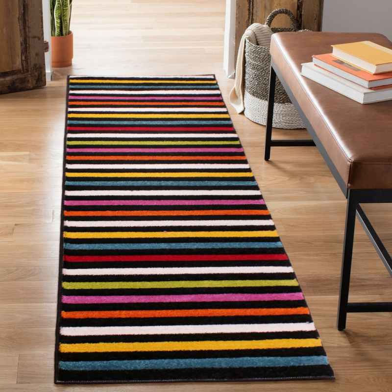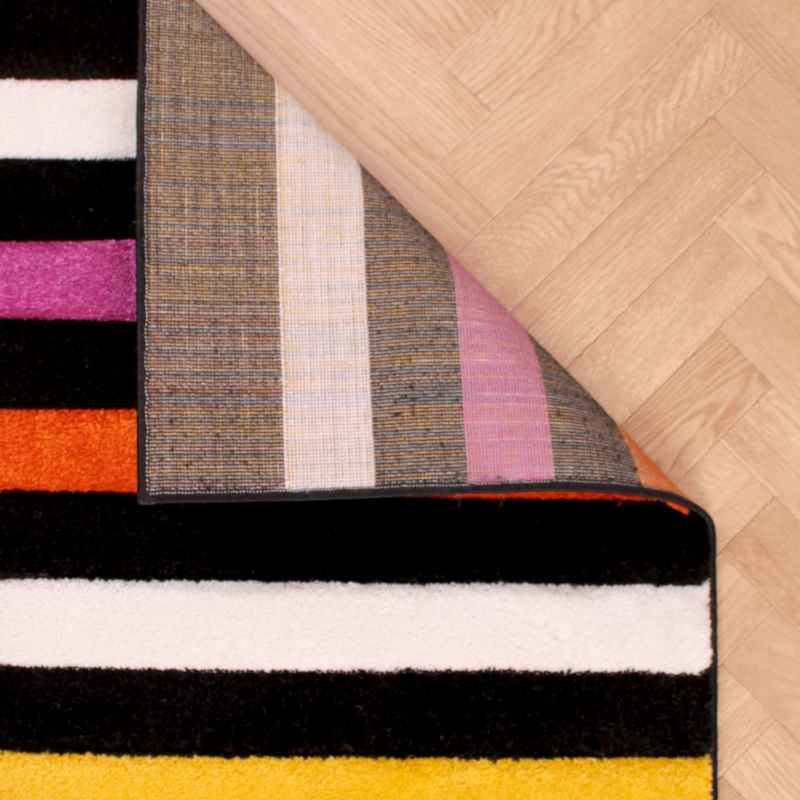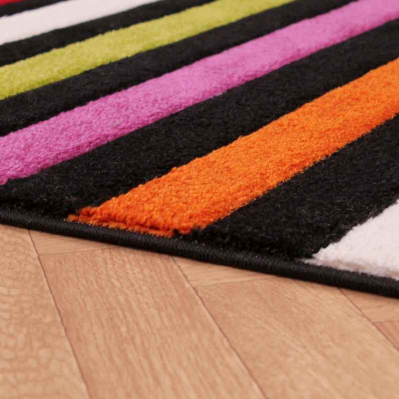 The Spectra Stilo runner is a bold and colourful statement piece, guaranteed to make an impact in your home. With its unique, carved striped pattern it will draw attention and admiration wherever it goes, finished in multi colour tones. This eye-catching piece will transform any corner of your home, perfect for living room and bedroom areas. Crafted from heat set polyester, available in one runner size. Also available in matching standard sizes and a matching circle rug. For matching standard sizes click here For a matching circle rug click here