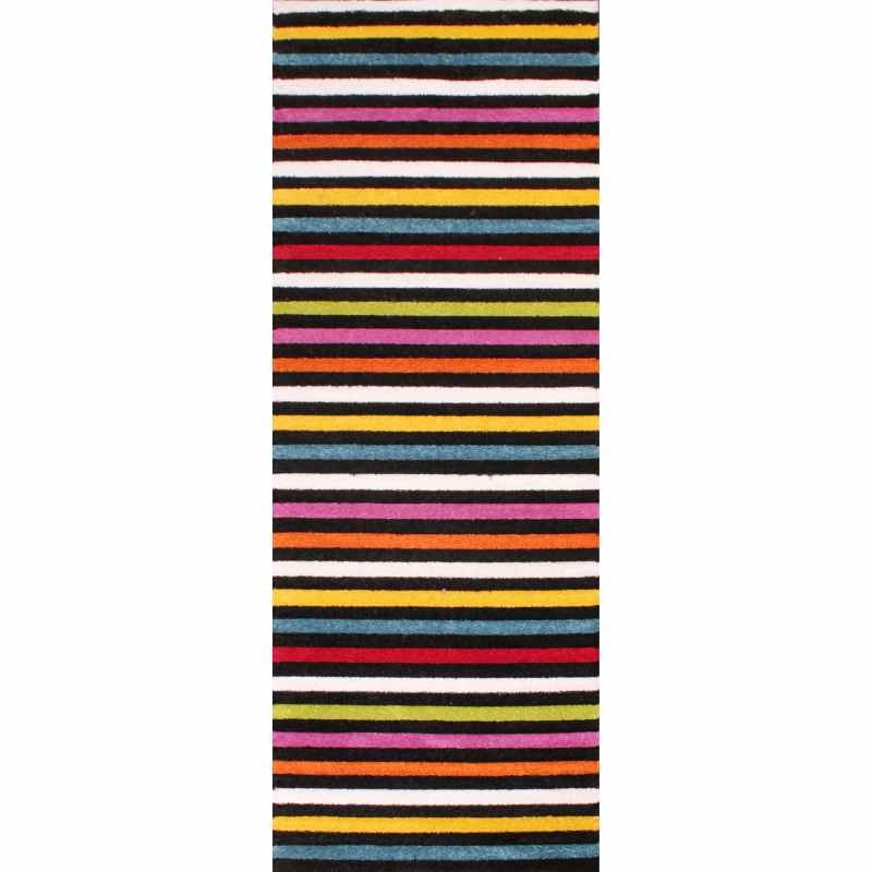 Spectra Stilo Carved Striped Modern Runner Rugs in Multi