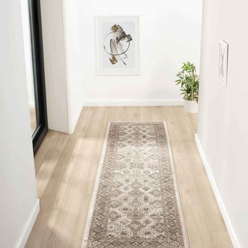 With traditional influences and striking colour tones, the Vintage 550AQ runner is big on style, featuring a vintage motif and border design, finished on a cream white ground. This runner brings a subtle, sophisticated feel to any interior with the timeless elegance of this traditional print, certain to steal the spotlight. Vintage 550AQ is a Turkish machine-made runner using a mix of luxury polypropylene and soft polyester. Ideal for a traditional living space, the Vintage 550AQ runner would be perfect placed in a hallway or under a table in your living room for a statement finish. This piece is guaranteed to bring an eye-catching element of sophistication and elegance to your home. Composition: 100% heat set polypropylene. Available in one runner size. Also available in matching standard sizes click here