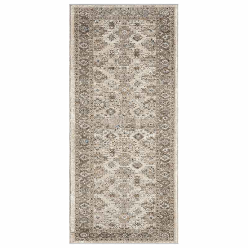 Vintage 550AQ Traditional Border Motif Runner Rugs in Cream Light Brown